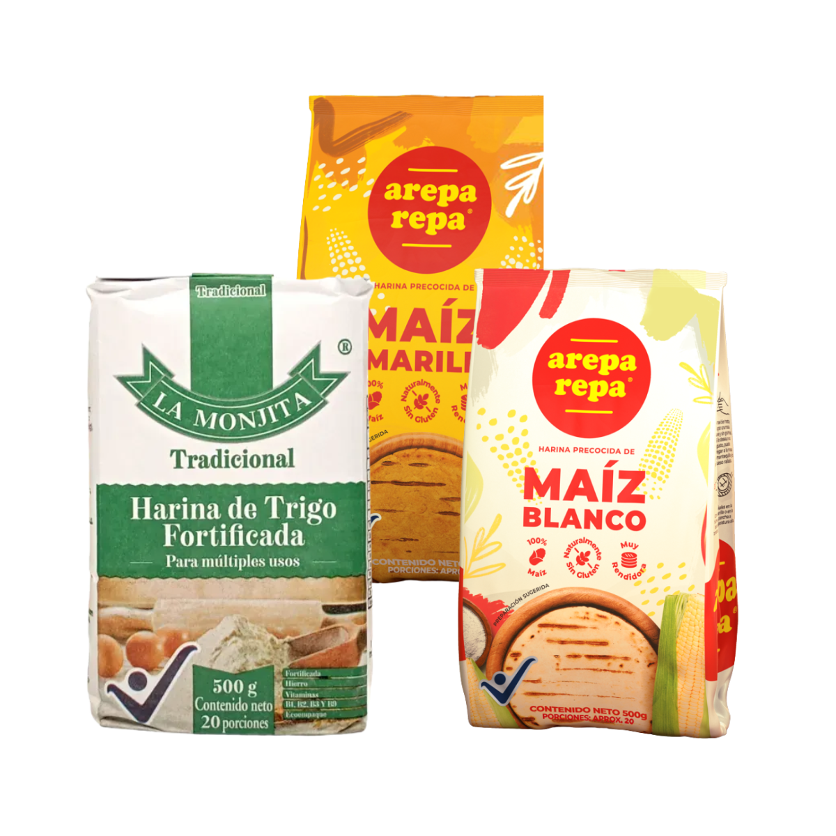 Un combo muy colombiano contiene harina Arepa repa blanca 500gr – Harina Arepa repa amarilla 500gr