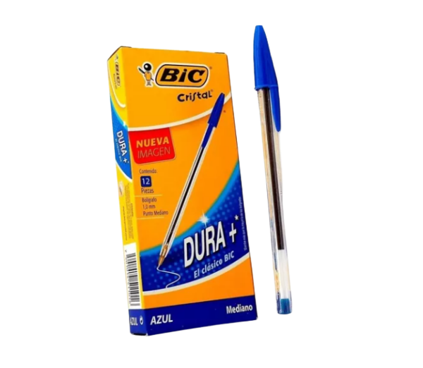 Esfero BIC con Tapa azul, caja por 12 unidades – Dura +
